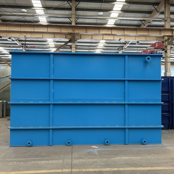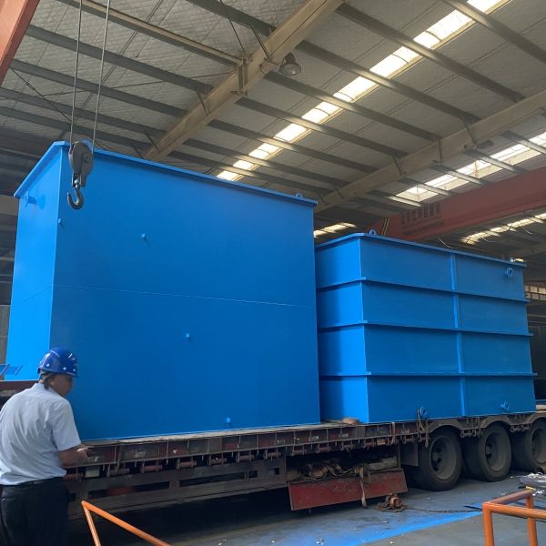 这个即将发货的生活污水处理设备,处理的是厂区生活污水,因为这是一个小厂区,所以说设备比较小,每小时的处理量是8吨,因为这个厂区还有一部分的工业废水,所以说上了我们这个设备,通过我们这个设备处理完以后,