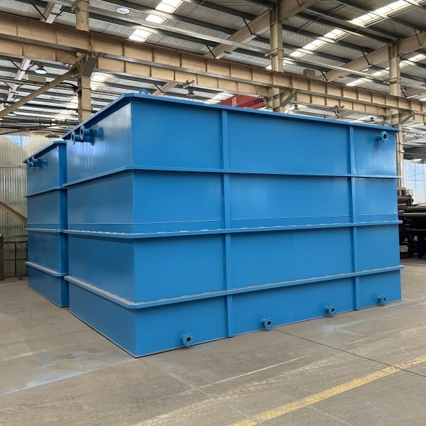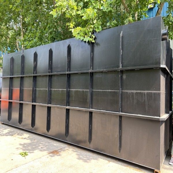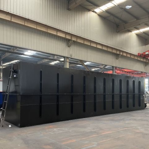 这是两台集成式的全自动智能一体化,外体为瓦楞板材质,结实并且美观,发往南方,放于地上,后期维护更加方便,每小时的处理量是25吨,设备应用于该地区的农污治理,出水符合农村污水排放标准的地方标准,进水前段
