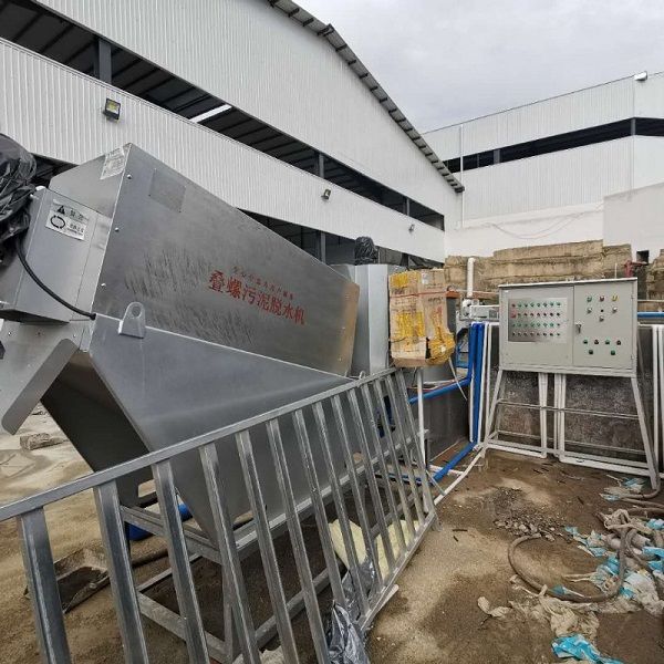 叠螺压滤机安装现场叠螺式压滤机机集全自动控制柜、絮凝调质槽、污泥浓缩脱水本体及集液槽于一体。
