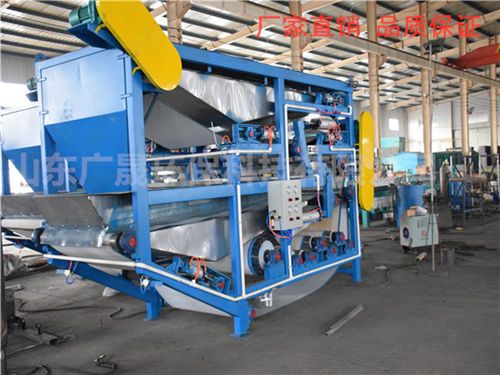 污泥脱水设备通过两条滤带缠绕在一系列顺序排列、大小不等的辊轮上,利用滤带间的挤压和剪切作用,来脱除料浆中水分的一种压滤设备,具有连续作业、自动化程度高、节能、使用维护方便等优点。
