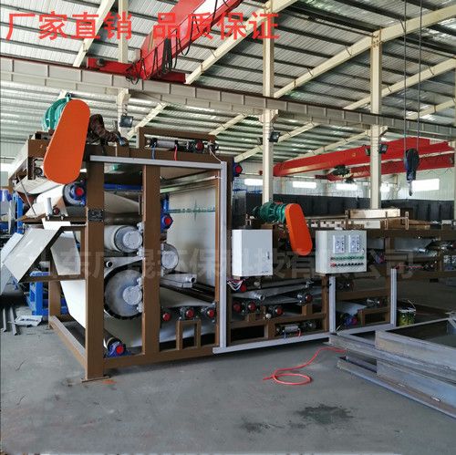 小型污泥脱水设备是通过两条滤带缠绕在一系列顺序排列、大小不等的辊轮上,利用滤带间的挤压和剪切作用,来脱除料浆中水分的一种压滤设备,具有着能连续作业、自动化程度高、节能、使用维护方便等优点,是一种进行污泥脱水减量化处理的理想设备。