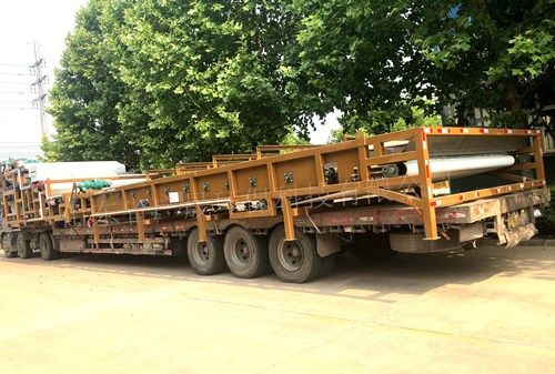 4.对夹挤压辊(或带)高压脱水区,污泥脱离中压区后就进入高压区,污泥在此区内受到1~3组对夹辊(或带)挤压,经过挤压后体积大幅收缩,污泥内的间隙游离水被充分挤出,此时,形成含固率较高的滤饼,分体式浓缩带式污泥脱水机特别适用大型矿山尾泥、大型洗砂场,石场制砂泥浆脱水、陶瓷原料泥浆、洗山砂、土包沙泥浆脱水、河道清淤等工业污泥深度脱水处理和大型污水厂的使用。